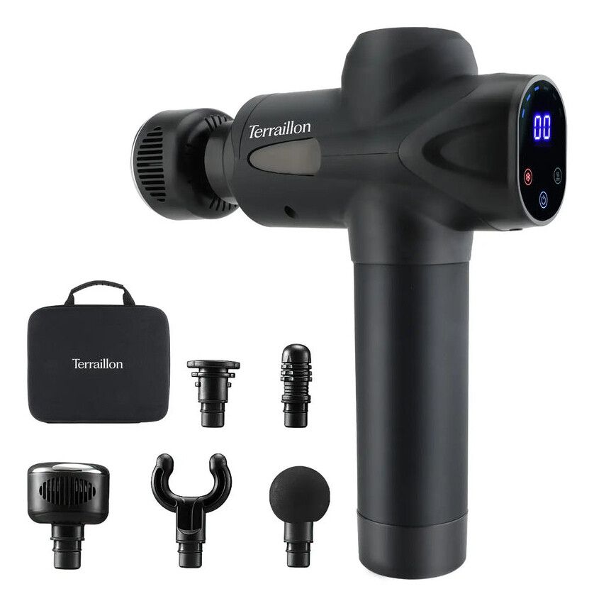Terraillon Gun Massager Expert. Tipo di massaggio: Massaggio a percussione, Uso appropriato: Universale, Colore del prodotto: Nero. Tipologia alimentazione: Batteria, Tipo batteria: Da Incasso. Larghezza: 180 mm, Profondità: 240 mm, Altezza: 70 mm. Tipo di imballo: Scatola. Quantità per pacco: 1 pz