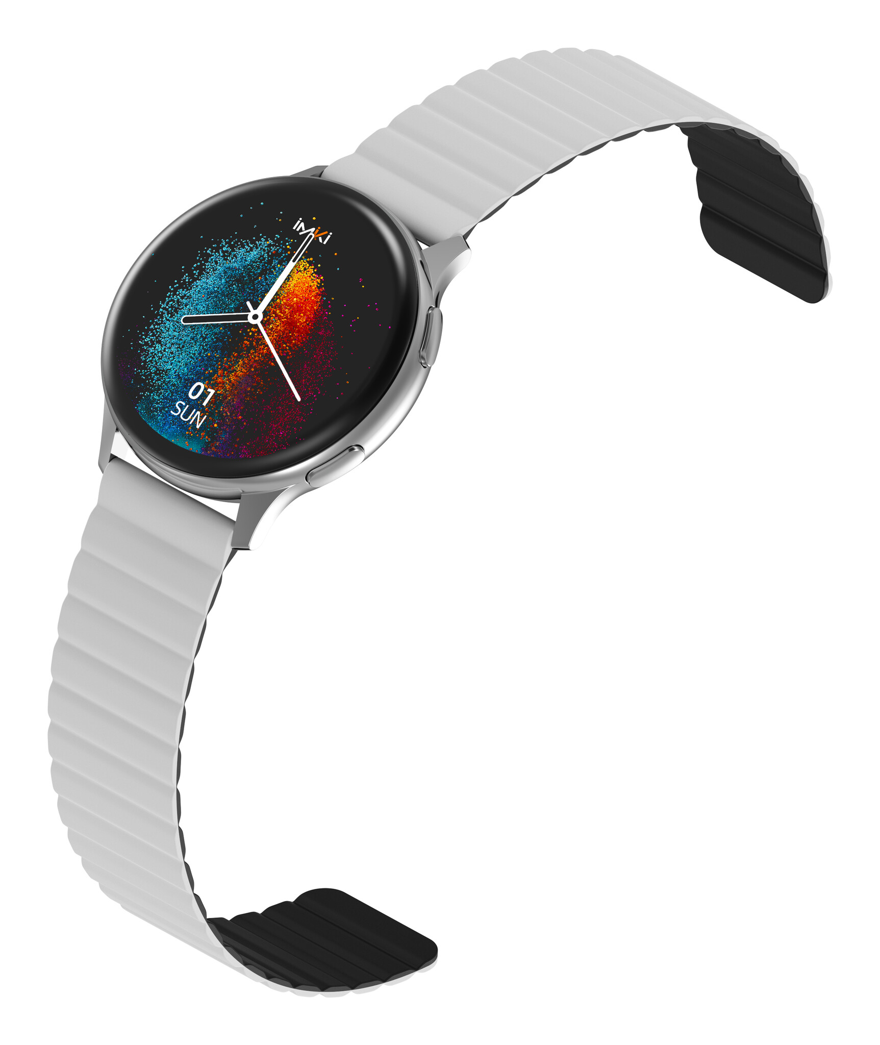 IMIKI HOLO PRO ARGENTO. Dimensioni diagonale schermo: 3,63 cm (1.43"), Tecnologia display: AMOLED, Risoluzione del display: 466 x 466 Pixel. Memoria flash: 0,128 GB. Capacità della batteria: 270 mAh. Peso: 55 g. Materiale cinturino: Silicone, Colore cinturino: Nero, Argento